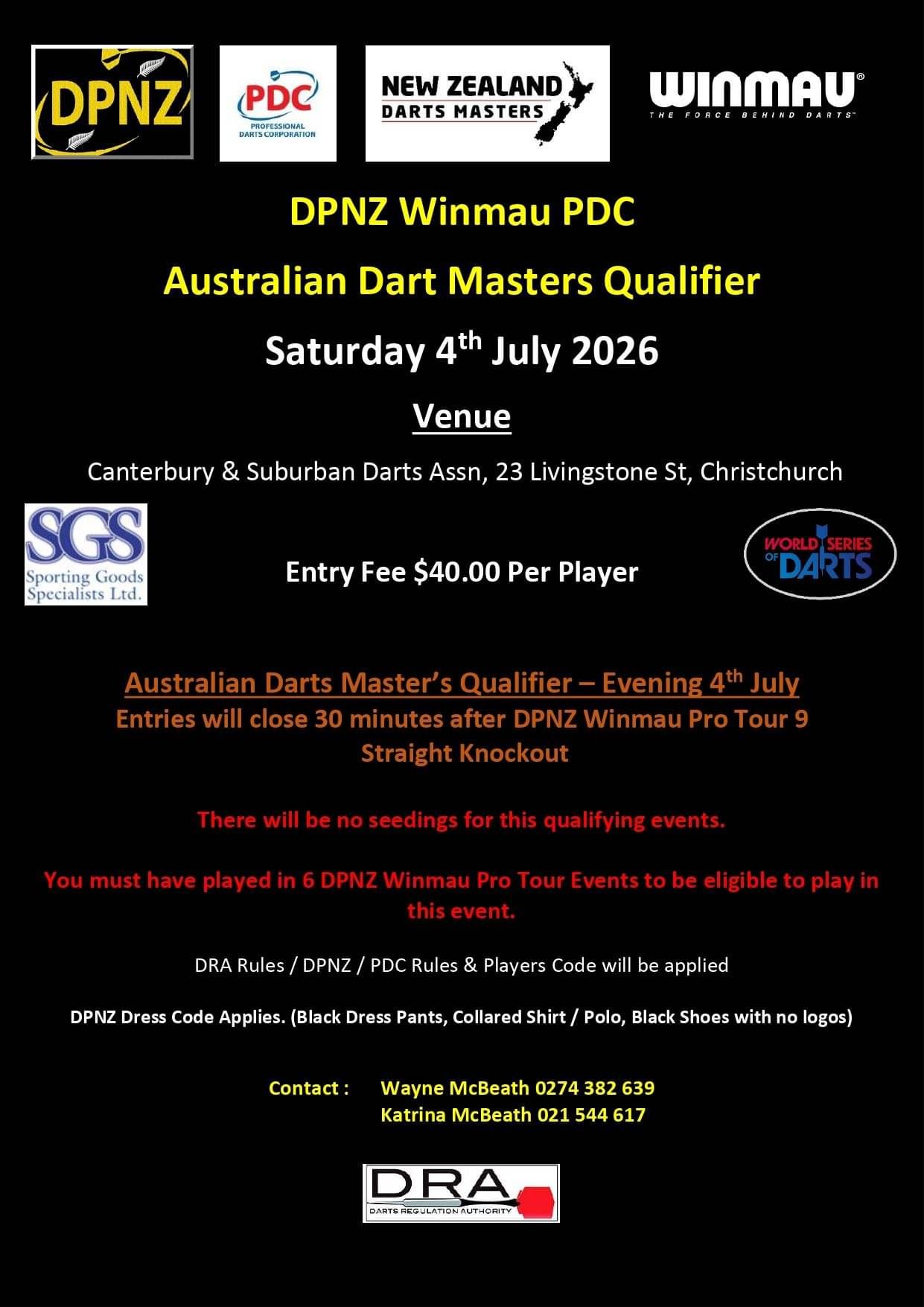 To be eligible to play in this qualifier you must have played in six DPNZ Winmau Pro Tour Events in 2026.
