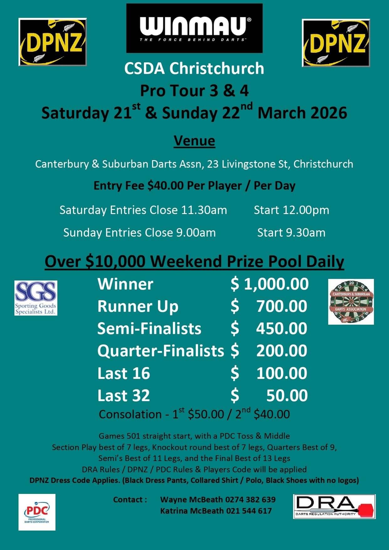 The second weekend of the DPNZ Winmau Pro Tour 2026 will take place in the heart of the South Island the wonderful city of Christchurch.